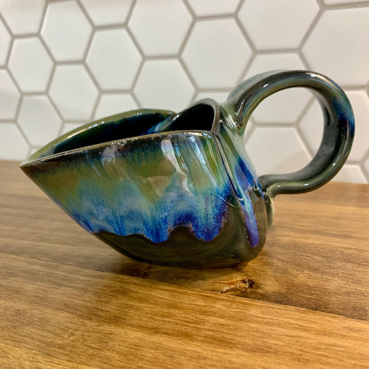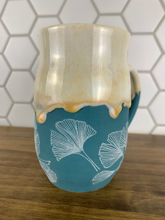 (SOLD OUT) Teal and White Mug with Ginko Leaves
